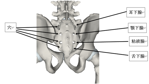 仙骨の左右に4つずつ穴が開いているのがわかりますでしょうか? この左右4つの穴が実は唾液腺とリンクしているというのです。
