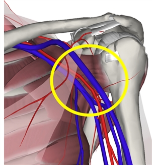 腕の付け根にそって、爪先でなぞった時に痛みを感じる人は、この部分の筋肉や靭帯が硬く硬縮してしまっていますので、腕に流れる血流は悪くなっています。